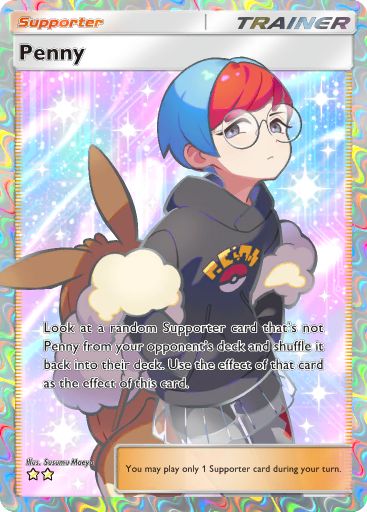 Côté Pokémon, la mangaka a réalisé onze cartes : deux cartes dresseurs mais surtout des cartes alternatives pour Vivaldaim et Haydaim, ainsi que pour le Morpeko de Rosemary et le Mélofée de Lilie !