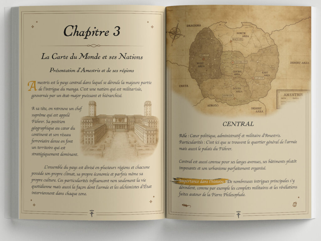 La spécificité de ce livre, c’est qu’il est complet. Complet dans le sens où il reprend l’univers de FMA en détails sous le prisme de la science.