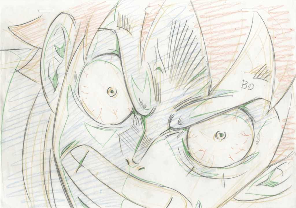 - Les genga sont les scènes clé de chaque personnage dans chaque séquence. On est très proche du rendu final (sans couleur)